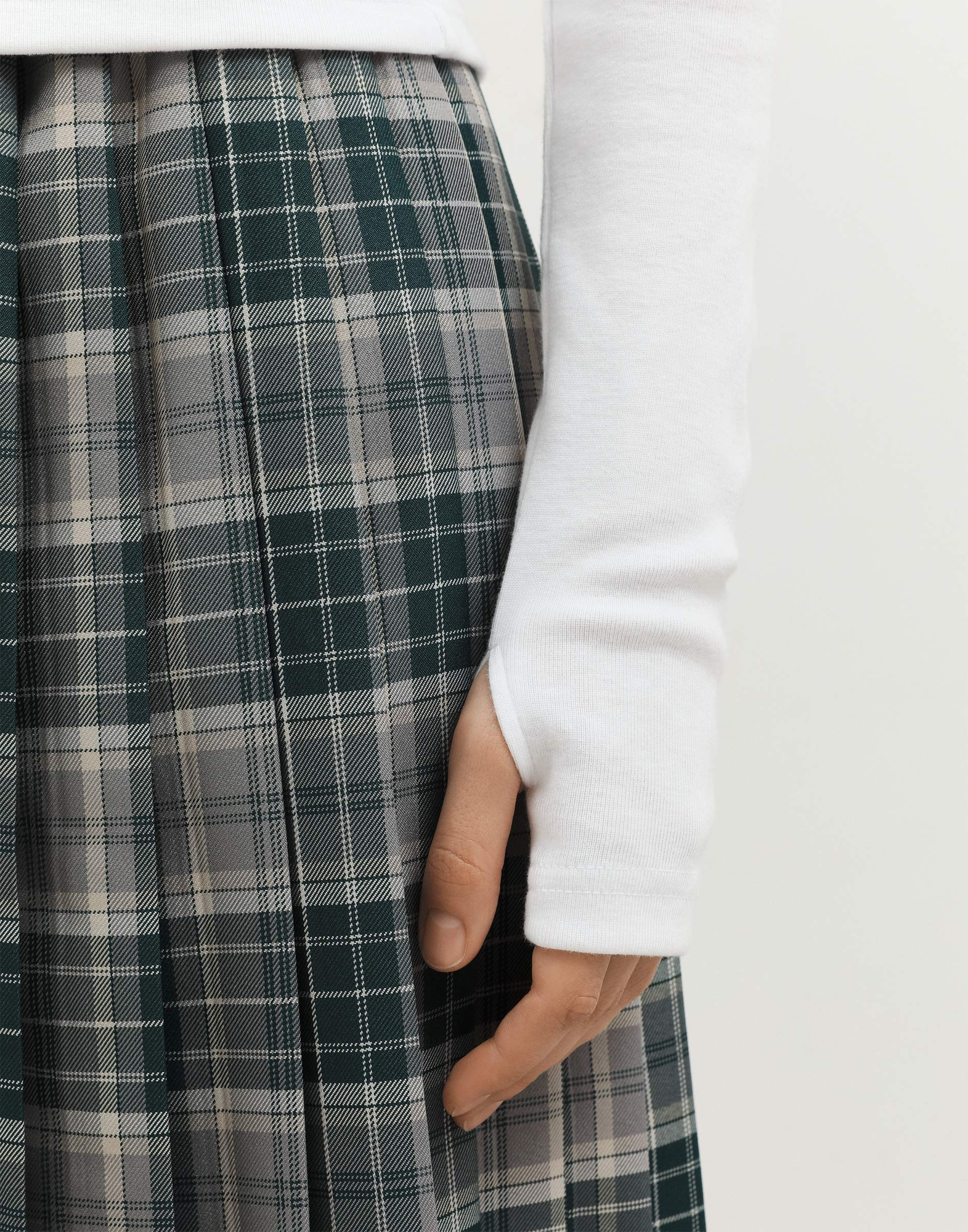 Белый лонгслив с воротником-стойкой и митенками GKT021593-1 купить по