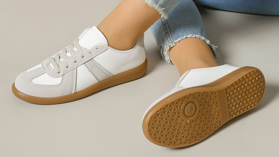 Кеды Женский белый, золотой Кожа, размер 39,5 На любой сезон Шнурки
